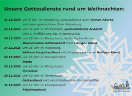 Die Mitarbeiter:innen im Amt sind Ihnen während der Weihnachtsfeiertage und ab 1. Jänner 2026 wie folgt für Sie da: Das Gemeindeamt ist geöffnet am 22.12.2025 | 23.12.2025 | 29.12.2025 | 30.12.2025. Am 2.1.2026 und am 5.1.2026 ist das Amt geschlossen.Ab dem 7. Jänner 2026 gelten im Gemeindeamt Krumpendorf neue Zeiten für den Parteienverkehr: MO, DI, DO 08.00 – 12.00 Uhr und 12.45 – 14.00 Uhr &…