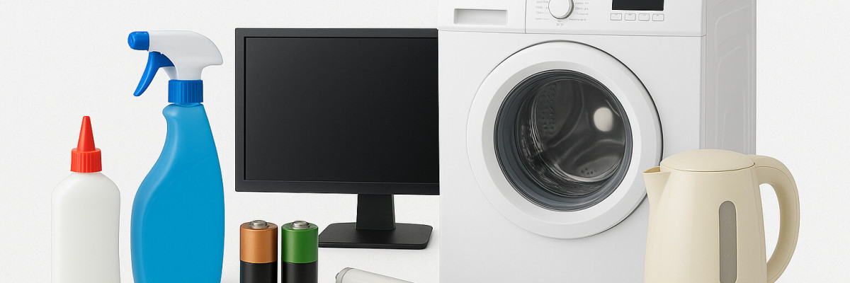 Lack- und Farbreste, Kleber, Putz- und Reinigungsmittel, Nitroverdünnung, Altmedikamente, Düngemittel, Chemikalienreste, Spraydosen, Ölfilter, Fette, Altöl, Batterien, Pflanzen- und Schädlingsbekämpfungsmittel, Leuchtstoffröhren, usw.,