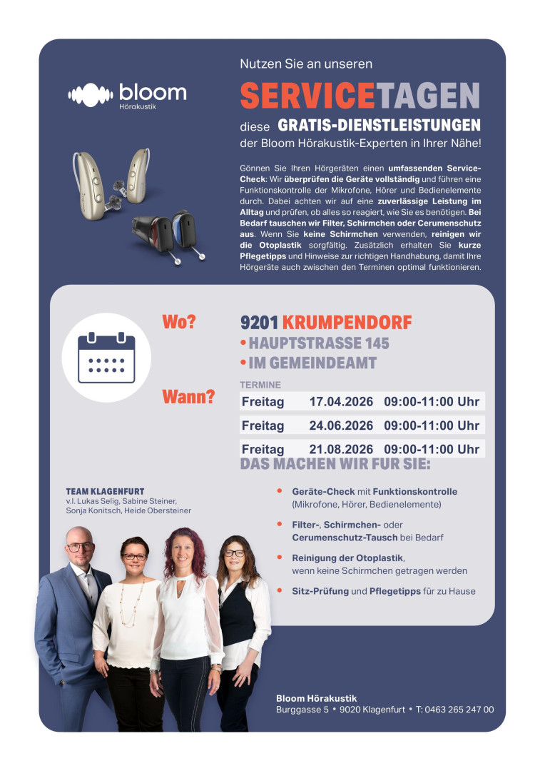 GRATIS-SERVICETAG der Bloom Hörakustik-Experten!